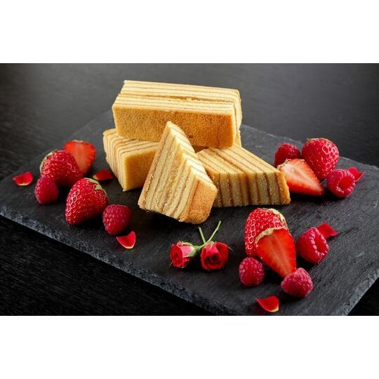 香川県の希少糖含有シロップ「レアシュガースゥイート」を使い一層一層丁寧に焼き上げ、すっきりとした甘さのしっとりしたバウムクーヘンに仕上げました。